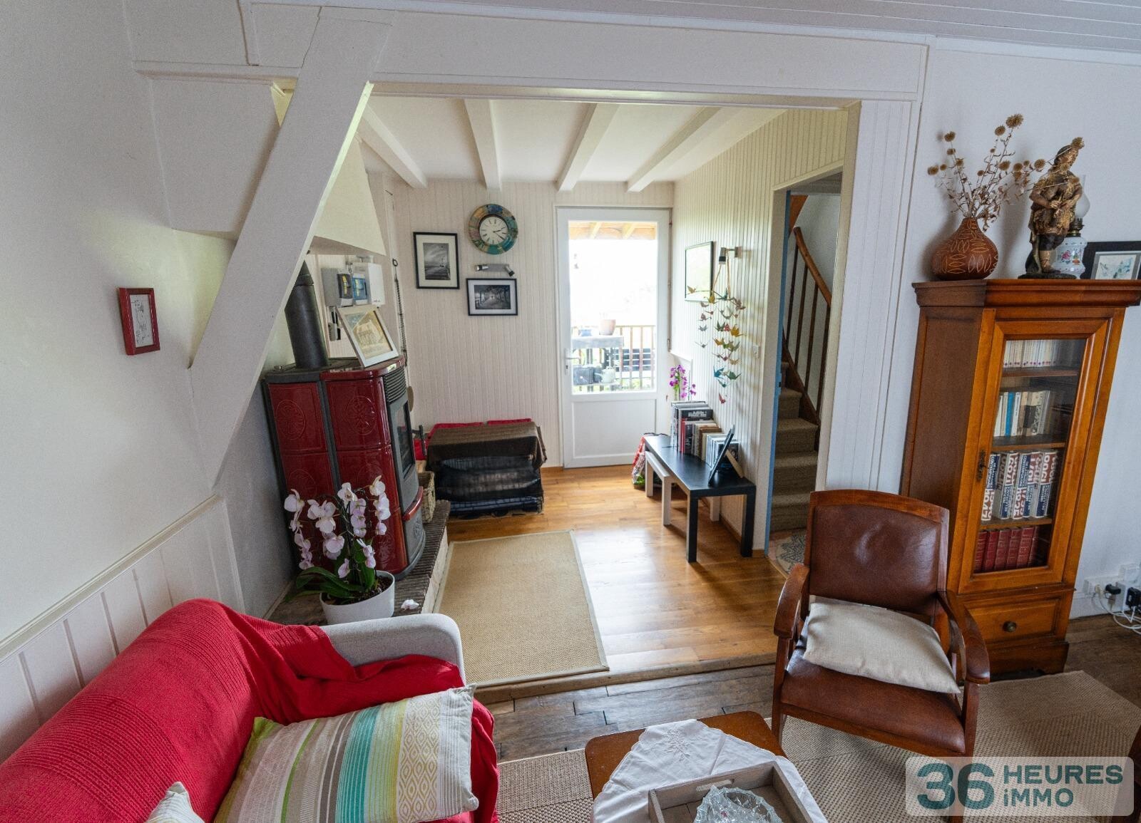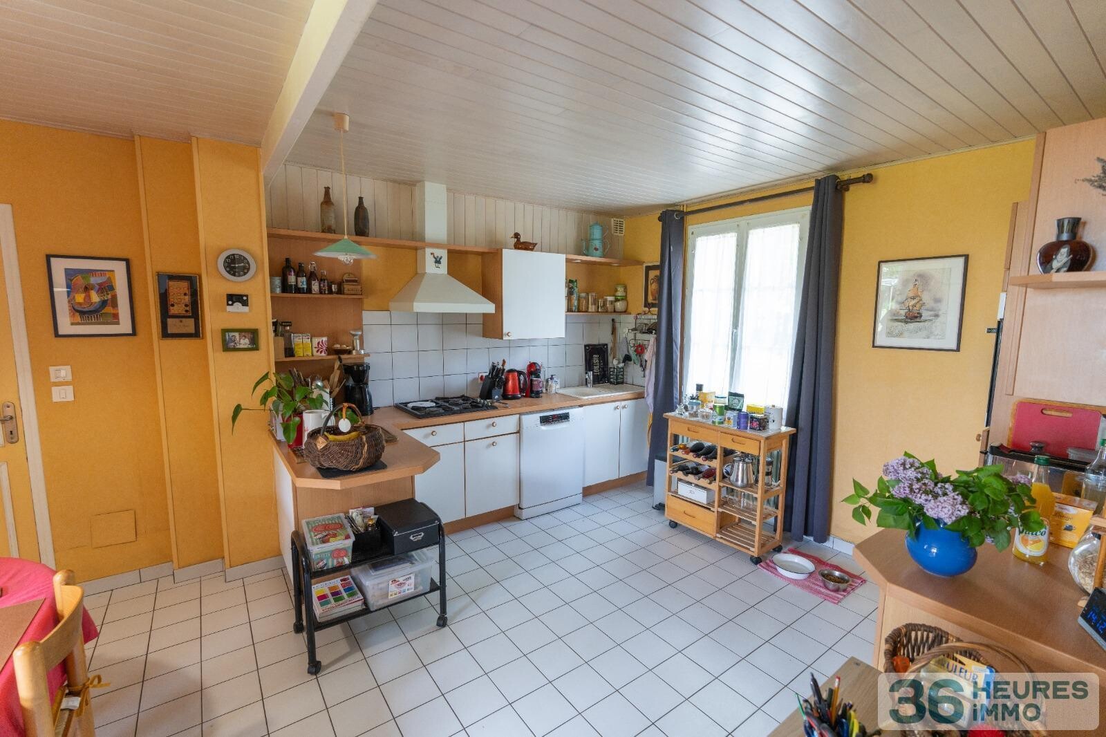 Au rez-de-chaussée, un couloir dessert une vaste cuisine, un salon-salle à manger d'un côté, un salon et une salle d'eau de l'autre. Ces pièces ont un accès direct à une belle terrasse couverte et au jardin côté sud.
