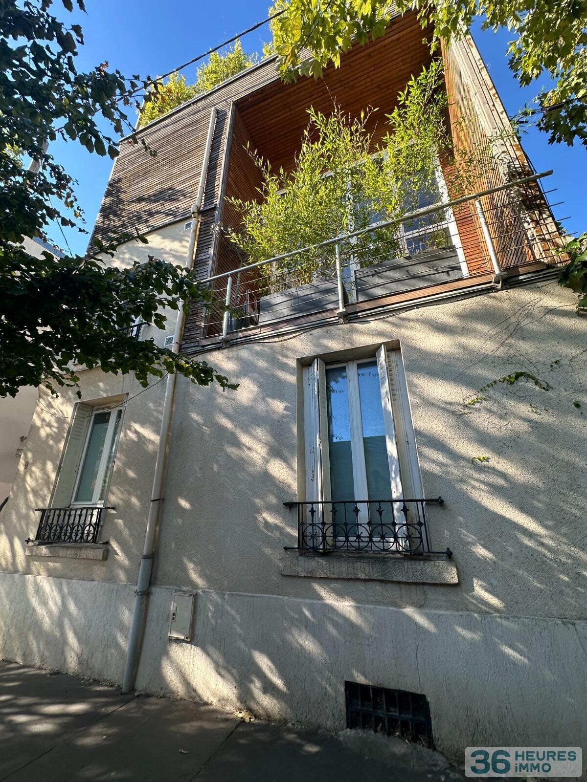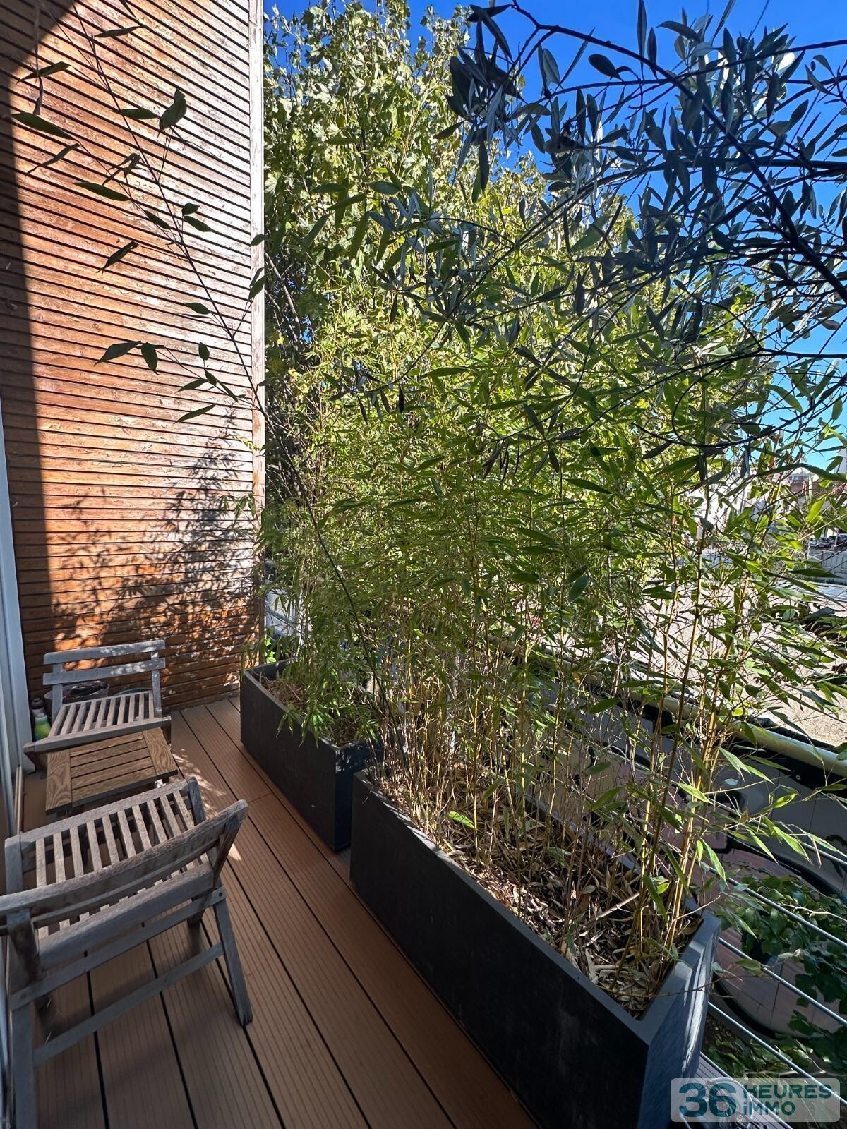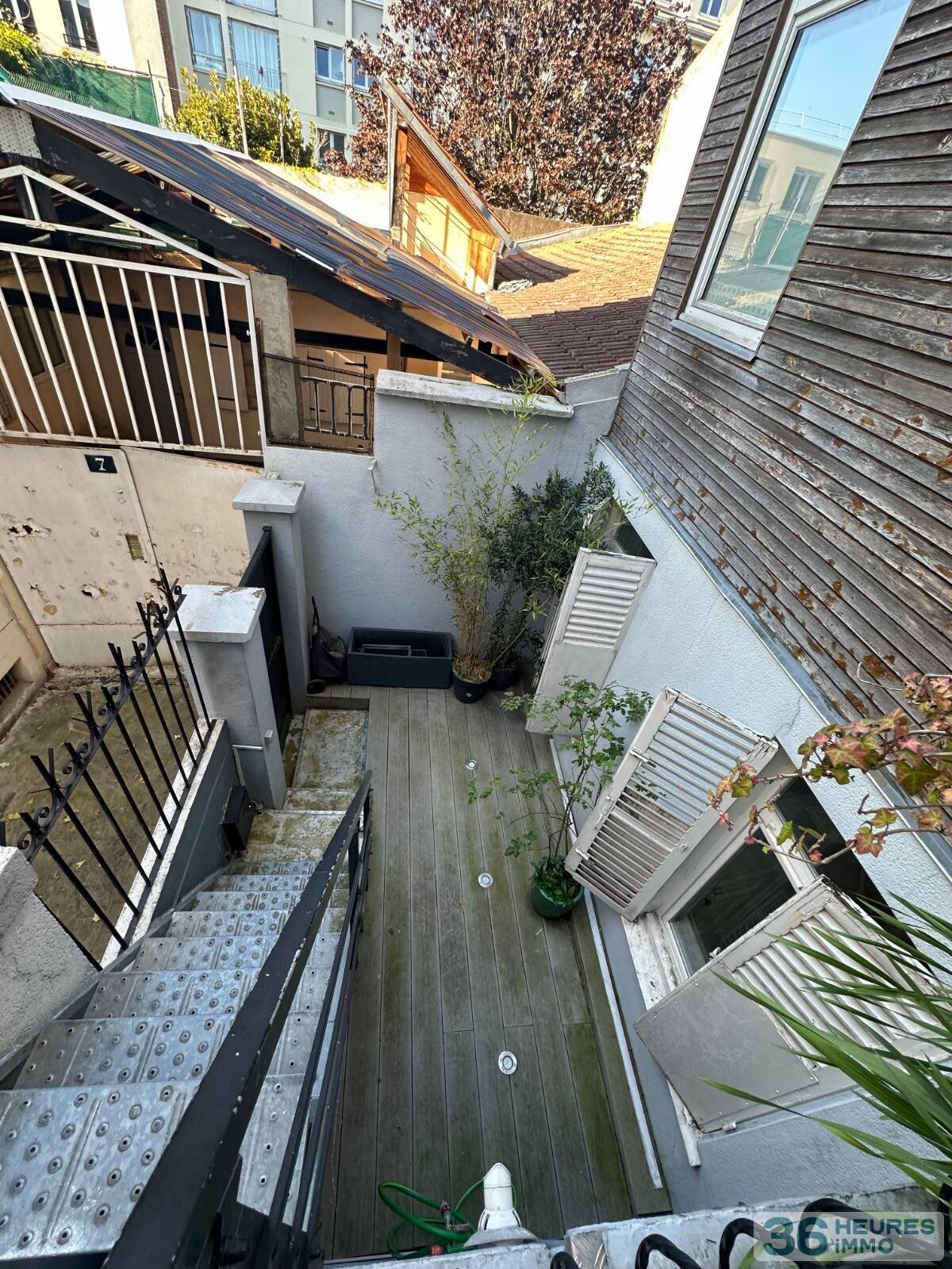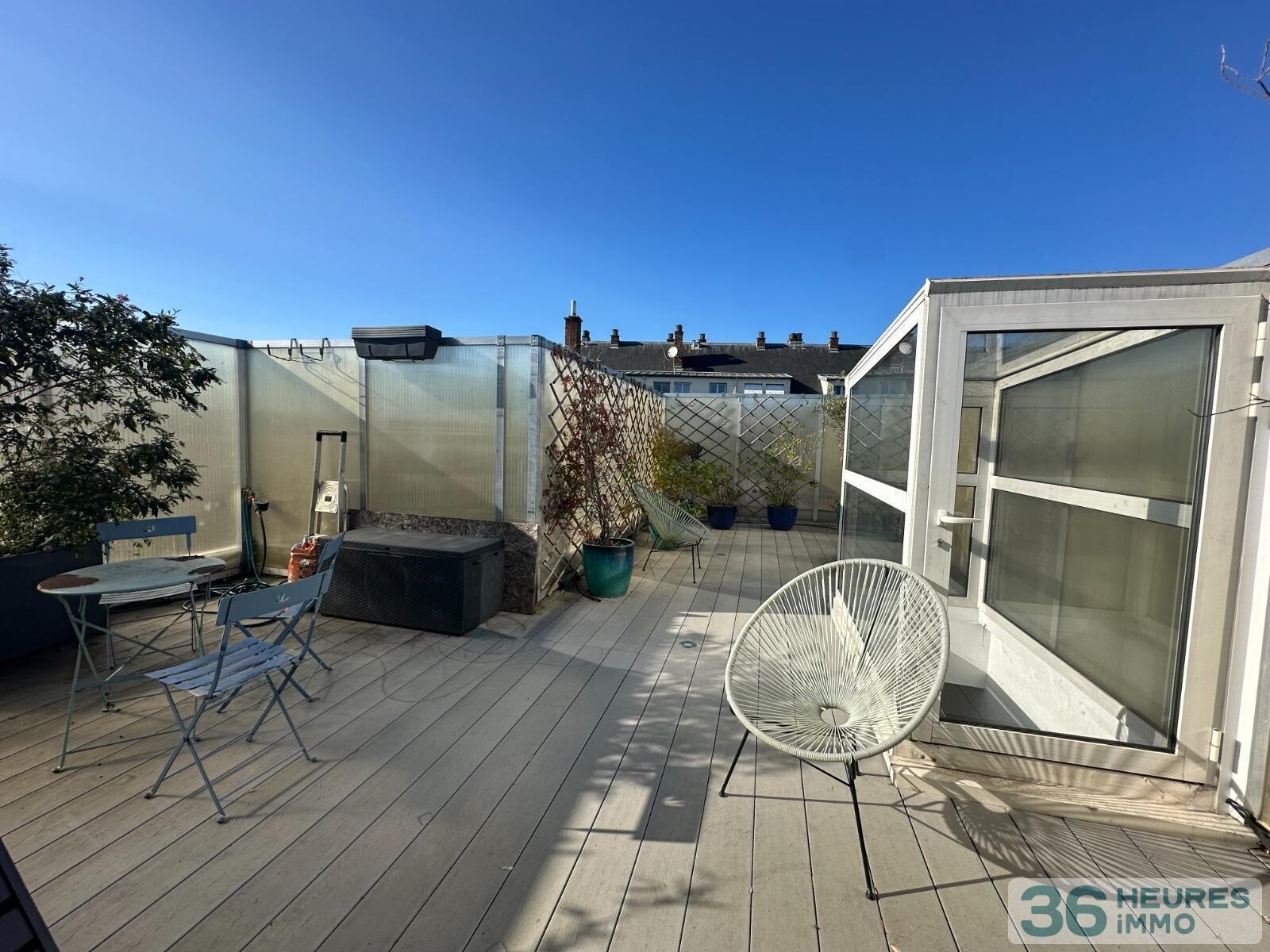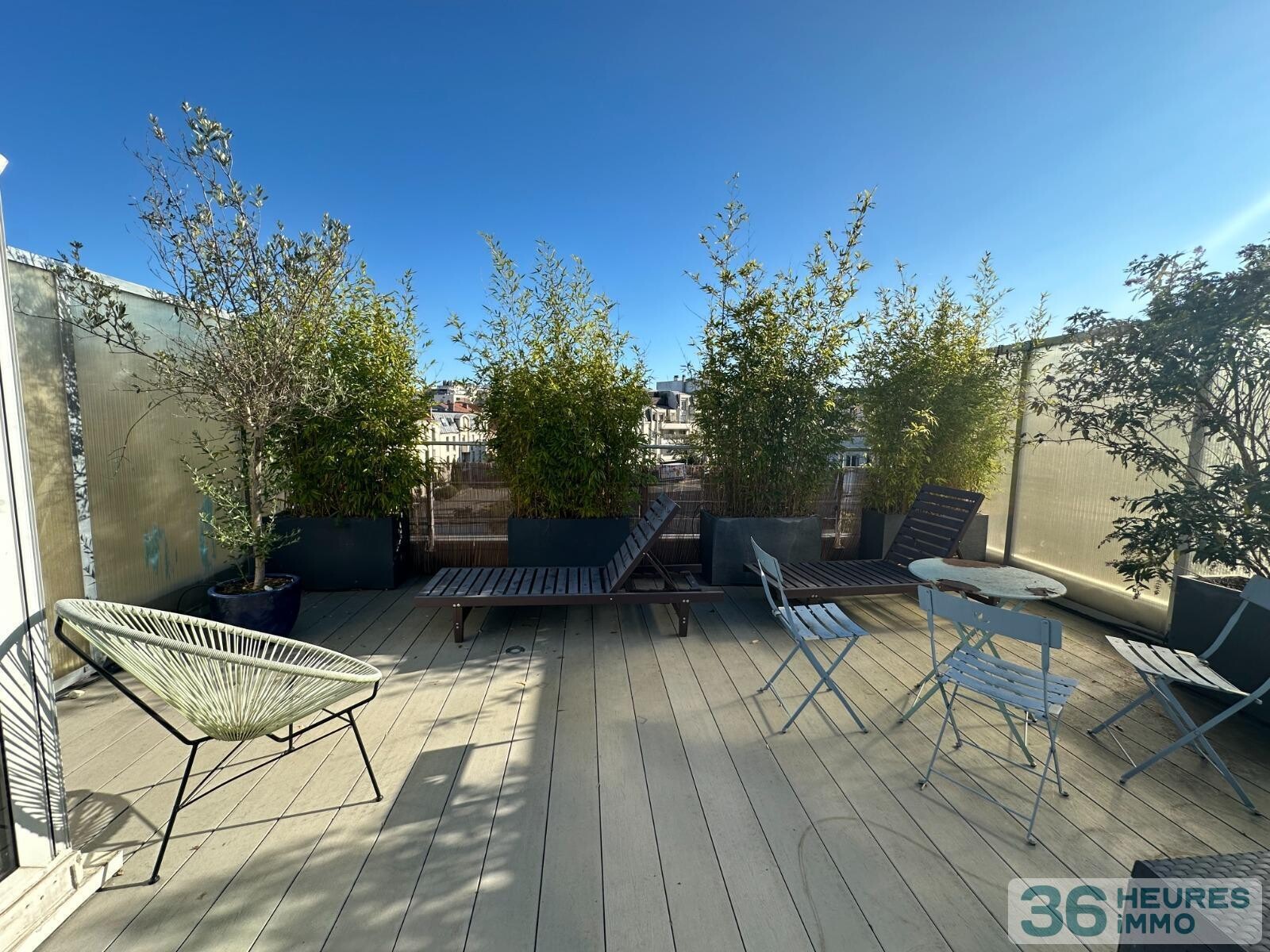 -au dessus un toit terrasse agrémenté de végétation.
